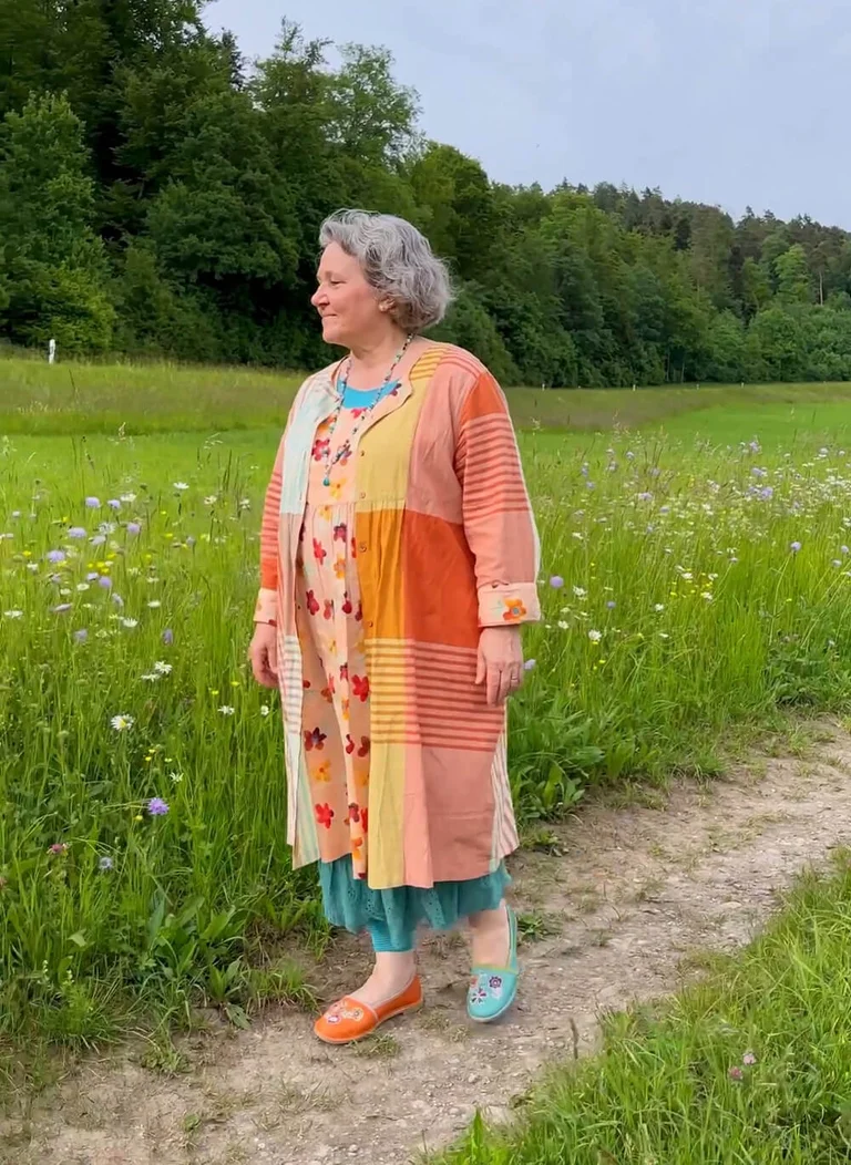 15 years ago she googled for organic fashions and has worn Gudrun Sjödén designs ever since. In the video, Daniela shares the thrills of gardening, and lets us in on how she creates natural beauty products.