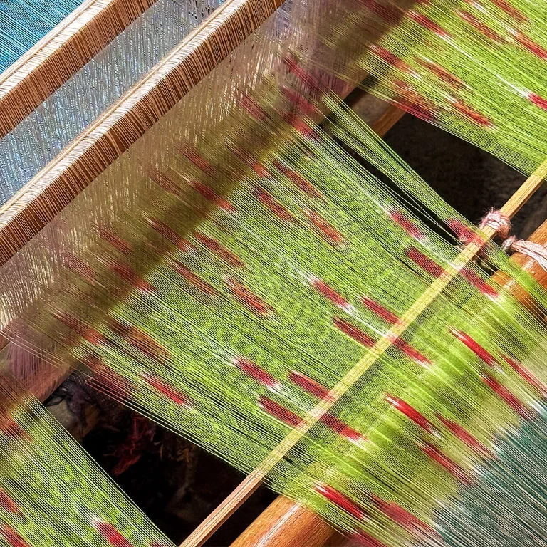 While working on our 2026 Spring collection, we visited Hyderabad in India, where skilled artisans showed us how ikat textiles come to life – step by step, colour by colour. We decided to work with warp ikat, where only the warp threads are dyed in a pattern before the weaving process begins. Although this technique is simpler than other ikat methods, it produces a rich spectrum of hues and designs. We filmed the weavers at work in the village outside Hyderabad, to show how the weaving is done. The yarn comes from southern India, the fabric is woven in the ikat village and the garments are sewn in Naraina, New Delhi. That’s quite a journey for each item of clothing!
