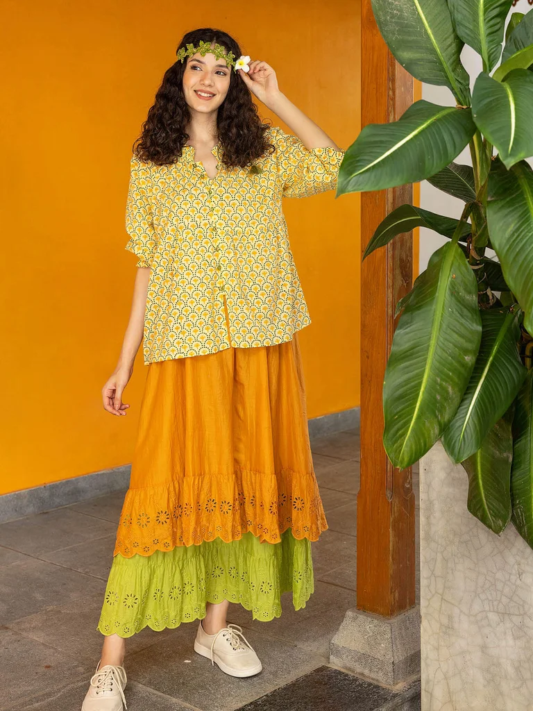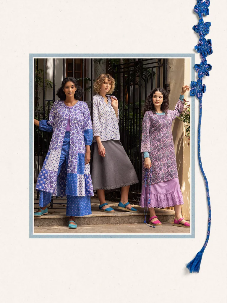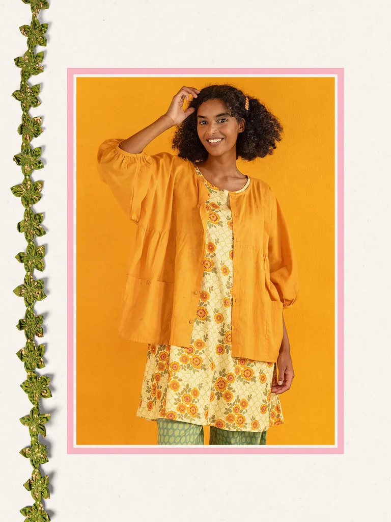 En Inde, on utilise beaucoup les petites fleurs colorées en guise de décoration – sur la table, les façades et dans les jardins. Mais aussi pour créer de belles guirlandes à porter autour du cou. Quant aux nôtres, elles sont imprimées au bloc !