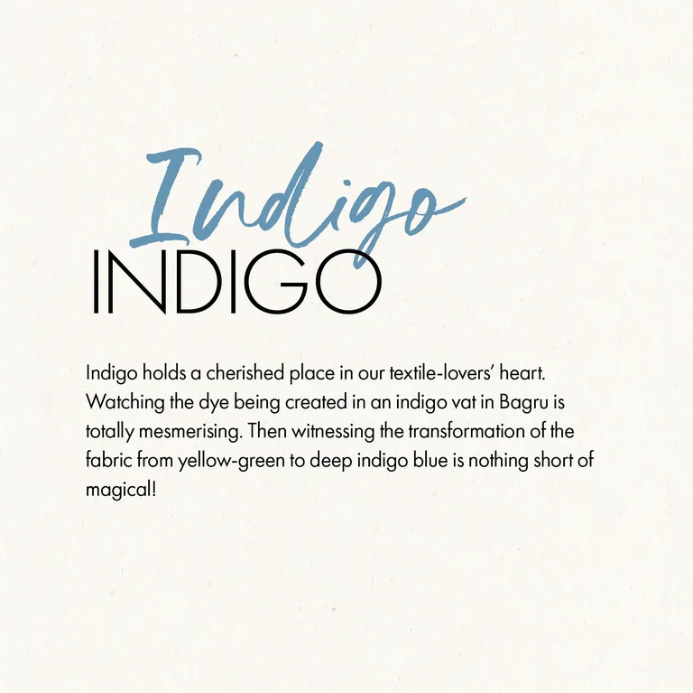 A close-up of block-printed items of clothing in shades of blue from Gudrun Sjödén.