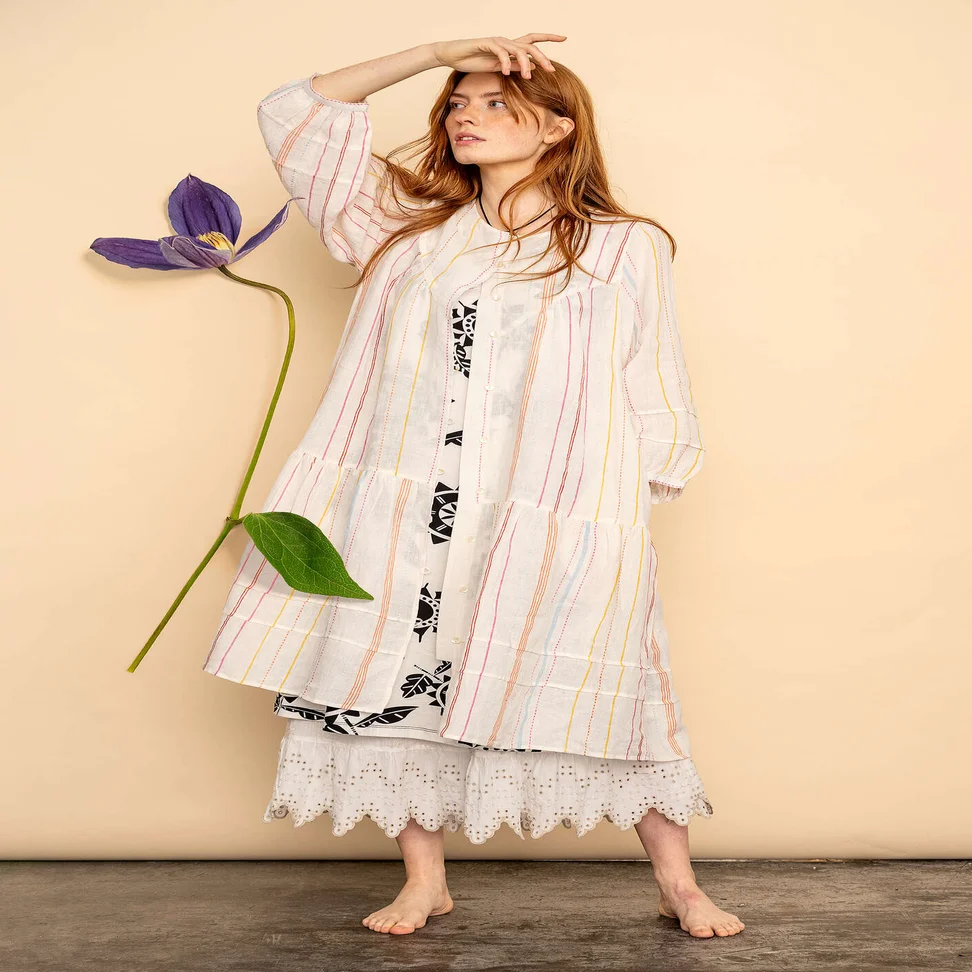 Akkurat som et tomt papirark i Gudruns malestudio kan fylles med de vakreste farger og fortellinger, kan en hvit kjole forvandles til noe helt spesielt – et plagg om gangen. Den er universell, tidløs og alltid tilgjengelig. Uansett om du er på vei til et sommerbryllup, en hyggelig piknik eller en bedre middag, er den hvite kjolen der som din trofaste følgesvenn.