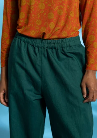 • Vävd byxa i ekologisk bomull/lin - buteljgrön