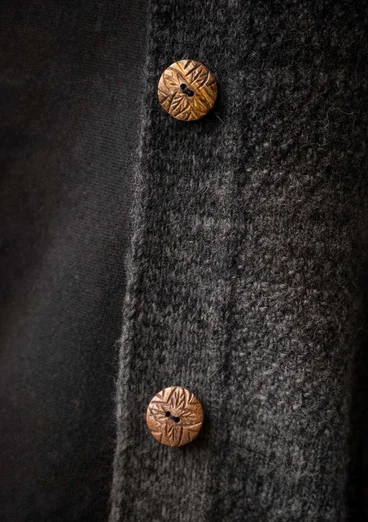 Målningen ”Bondbruden” på Ålands museum, med en svartklädd brud, blev ingången till detta program med en BRODERAD klänning som signaturplagg. Här finns även tryckt trikå med mönster inspirerat av sensommarens blomning i trassliga rabatter. Lite stickat blev det också, både nyheten ullpointelle med en lätt filtning, långkofta ”ECKERÖ”, strukturstickad i effektfärgat garn samt förtjusande lilla ”ANEMONE” med matchande brudvante.